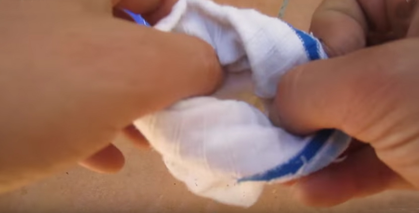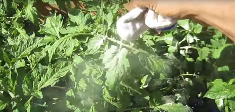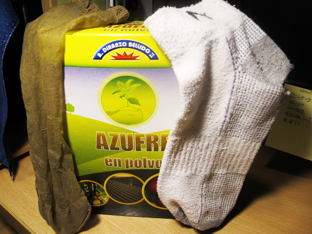 | Forma casera de espolvorear el azufre para un huerto urbano o plantas de terraza. NO hace falta fuelle. | ||